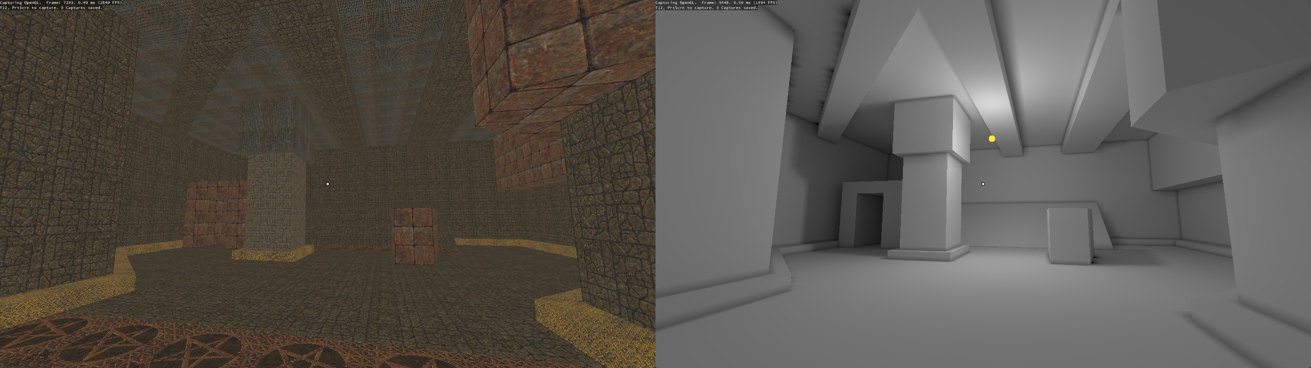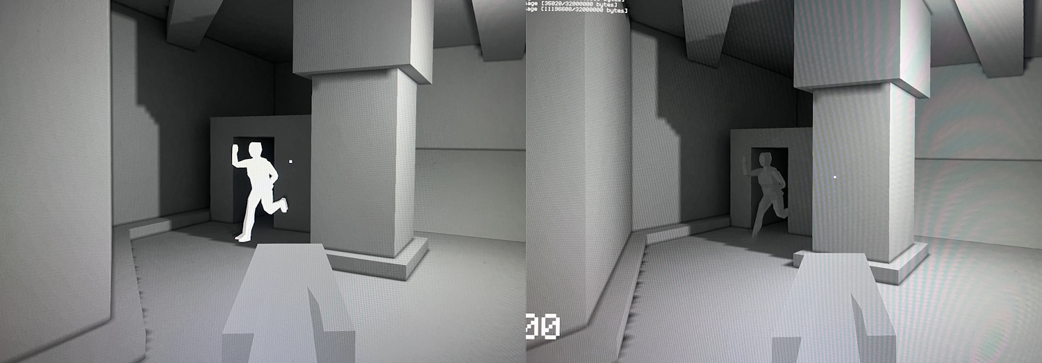 Dynamic models such as characters are illuminated using light probes baked into the levels. It uses the same Monte Carlo path-tracing shader to collect the indirect bounce lighting from the 6 directions around each light probe. The directional data gives me something similar to Valve's Ambient Cube solution in Half-Life 2. The difference in my solution is that I cache which directional light sources are visible from the light probe and use this later to know which light sources are occluded from that region in space.